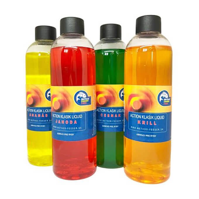 ACTION KLASIK LIQUID obsahuje intenzívne arómy, výrazné farby, vitamíny, minerály, aminokyseliny a stimulant žravosti rýb.