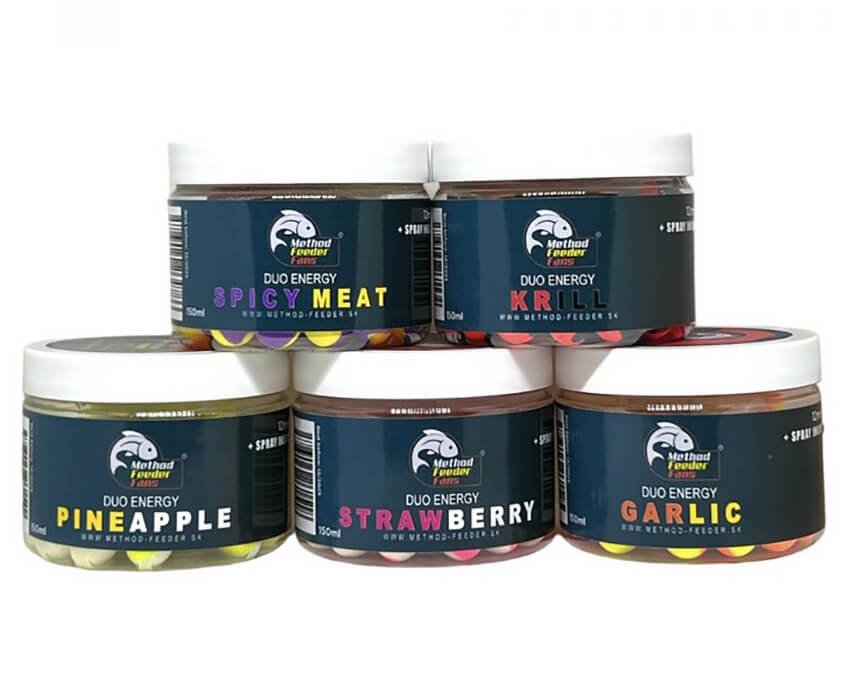 Duo Energy je plávajúce boilies atraktívnej príchute v dvoch výrazných farbách v jednom. Pop Up od MFF Vám bude zaručene plávať desiatky hodín, a po celý čas bude do okolia uvoľňovať atraktívnu vôňu. Má výrazný vztlak.
