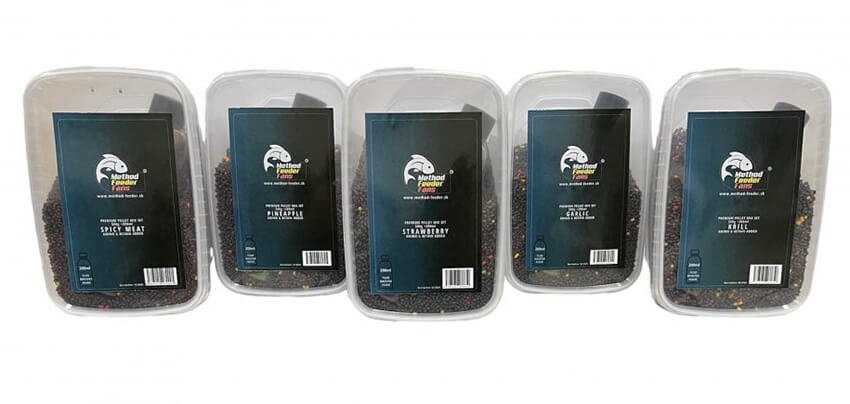 Praktický set osvedčených mikro peliet a atraktívneho fluo boostra pre lov technikou method feeder.