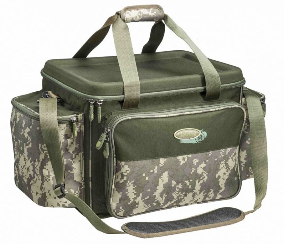 Precízne spracovaná prepravná taška v atraktívnom dizajne digitálneho maskáča s priestrannými bočnými vreckami. Tvrdené veko slúži ako stolík na drobné príslušenstvo. Luxusne polstrovaný popruh umožňuje pohodlné nosenie cez rameno. Perfektný spoločník na každú rybačku!