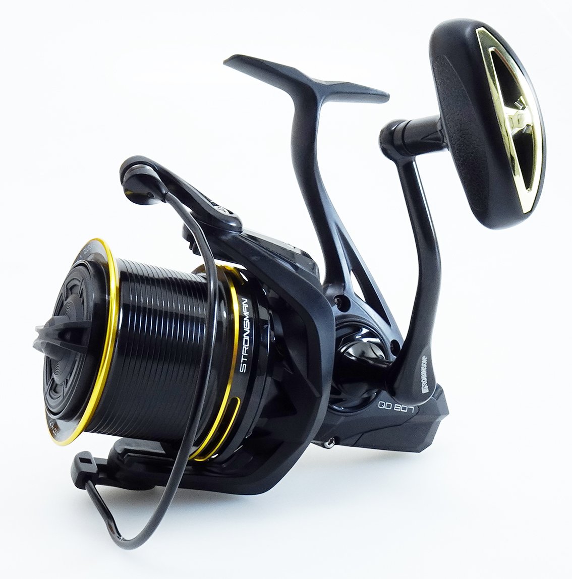 Nový, veľký a silný Strongman je vybavený 7 ložiskami z nehrdzavejúcej ocele, ktoré odolávajú aj slanej vode. Navijak je vhodný aj na surfcasting. Silný šnekový mechanizmus je dimenzovaný tak, že cievka pomaly osciluje. Hlavná oska je hrubá 6 mm! Duralmíniová, dvojfarebná cievka je anodizovaná. Pod ňou sa nachádza plastový systém proti zapadnutiu vlasca. Rýchla QD brzda má silu až 25 kg!