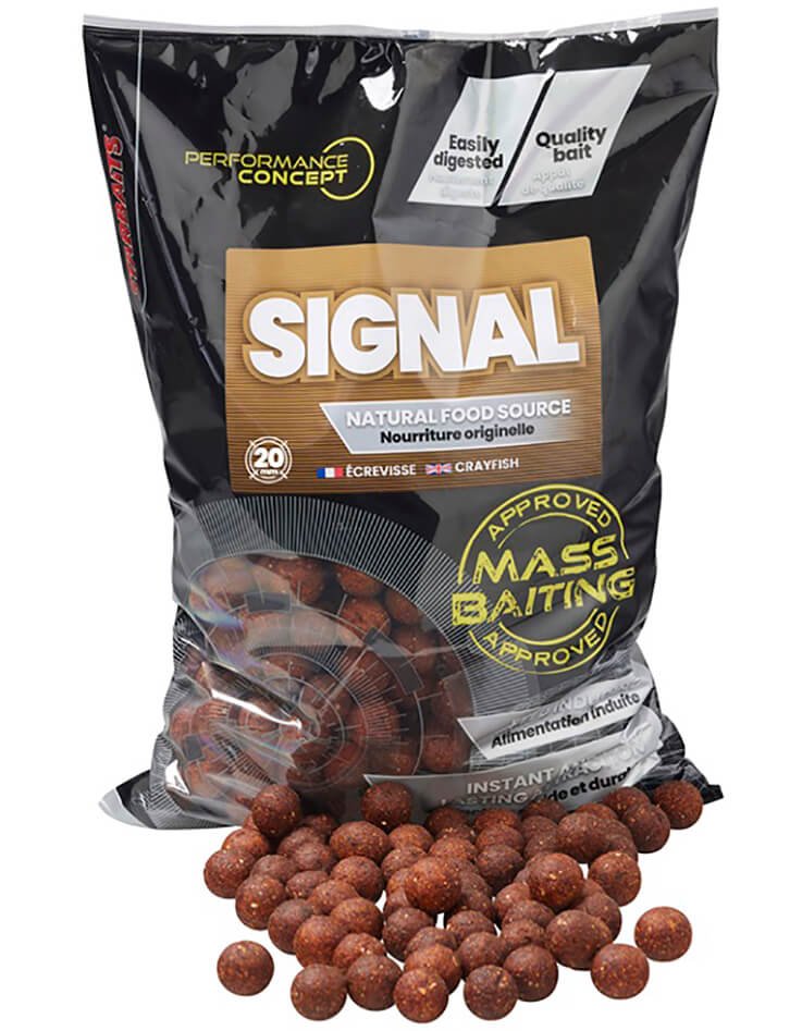 Signal má určite najkoncentrovanejšiu naturálnu pachovú stopu (silný živočíšny zápach) zo všetkých receptúr a patrí asi k najpoužívanejšiemu boilies na lov veľkých kaprov na veľkých vodných plochách. Hlavnými zložkami sú múčky z rakov, mušlí a ostatných vodných živočíchov vrátane škrupín na docielenie chrumkavého efektu, ktorý milujú hlavne veľké a staré ryby.