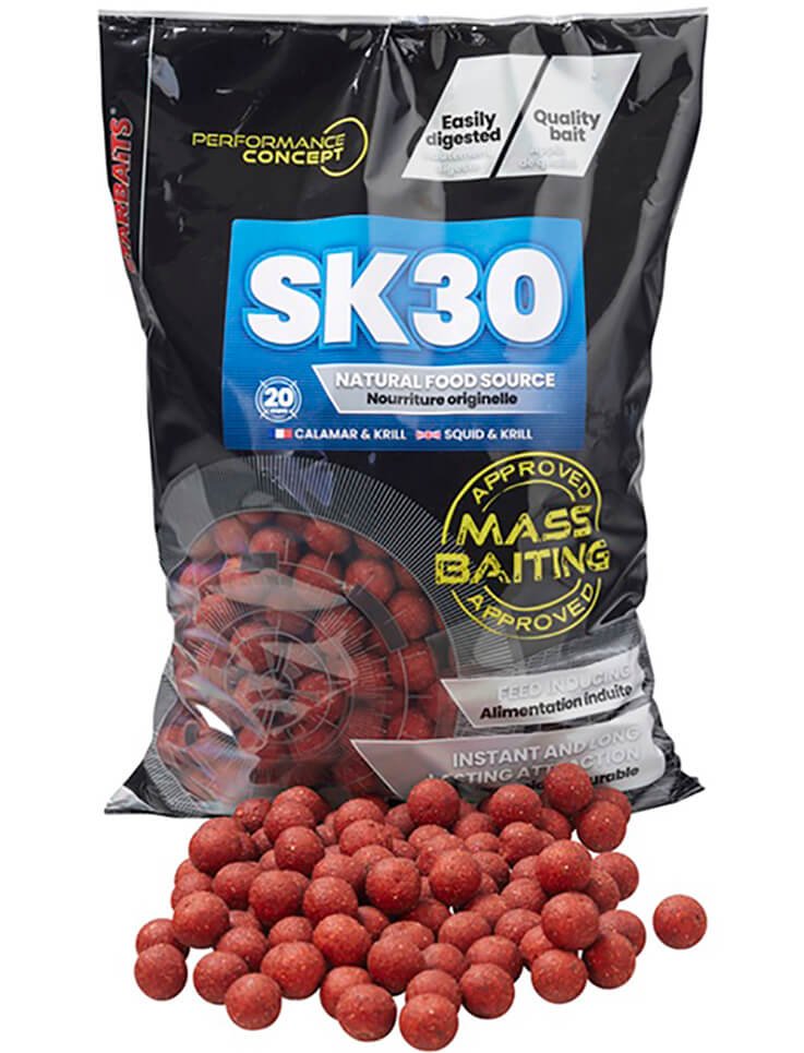 SK30 je bezpochyby najpoužívanejšou receptúrou medzi pretekármi na tých najťažších kaprárskych súťažiach. Tajomstvom účinnosti SK30 na dlhodobejších výpravách alebo závodoch je kombinácia špičkovej olihňovo-krillovej zmesi s unikátnym prírodným olejom, ktorý vyvoláva u rýb potravinovú závislosť, čím je možné dlhodobo udržať rybu na kŕmnom mieste.